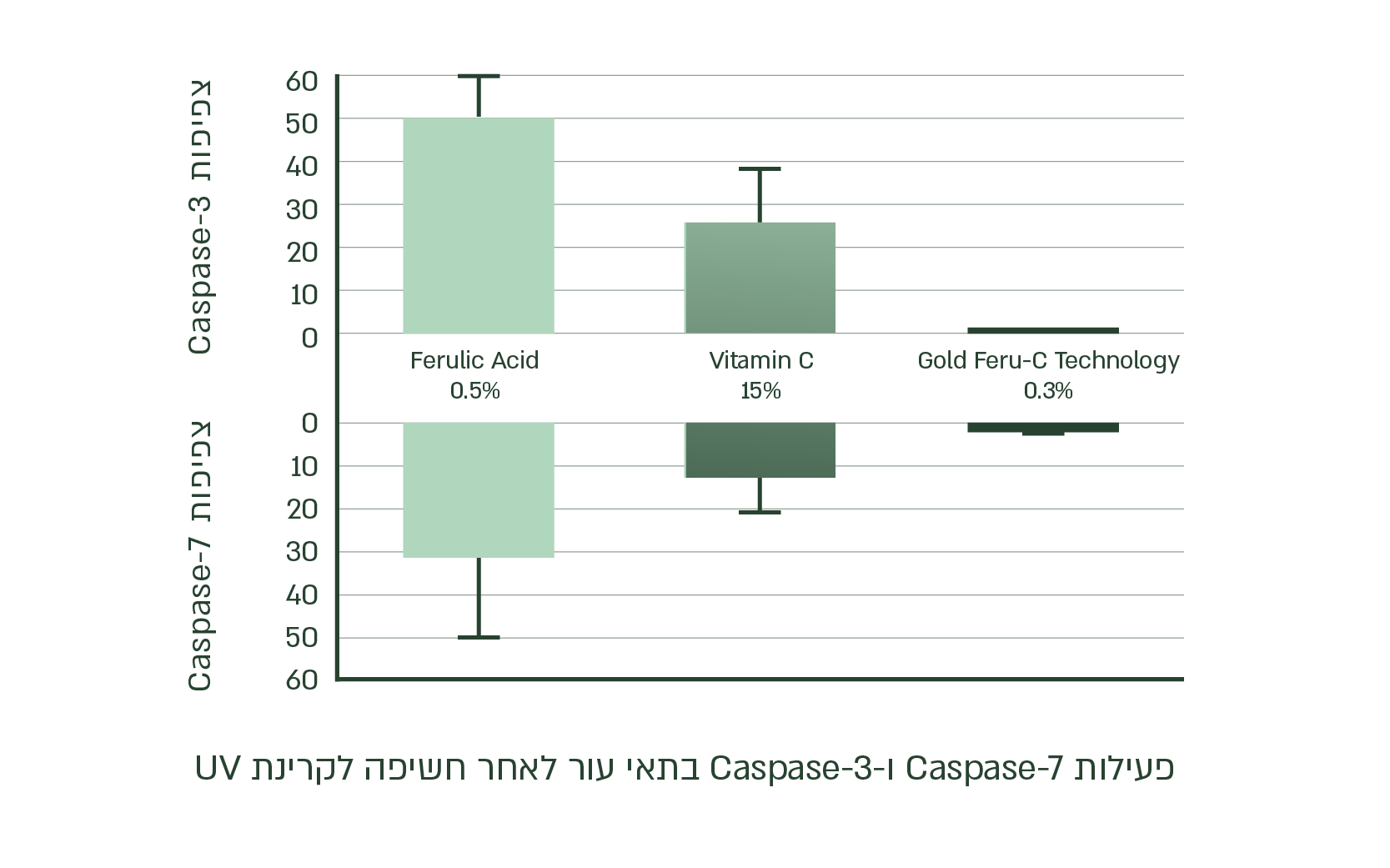 מחקר Ex Vivo הראה שהקומפלקס מצמצם משמעותית פגיעה תאית ודלקת לאחר חשיפה ל-UV, בזכות פעילות נוגדת חמצון מוגברת ושיקום רקמות העור.